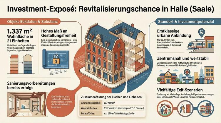 Projektentwicklung in zentraler Lage von Halle (Saale) – 21 Einheiten | 1.337 m² | kein Denkmalschutz